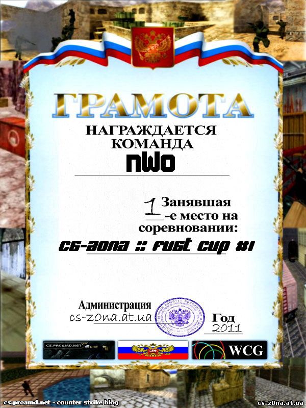 | 1. Название команды .:Priorat[Siona]:. 2. Состав команды STEAM_0:1:35271818 kak+yc STEAM_0:1:17486500 titaim STEAM_0:0:14731647 rik STEAM_0:1:20792483 panika STEAM_0:0:27199531 neoriginal 3. Ваш город наб. челны 4. Как с вами связаться ICQ 552603499 (vovan500rus) писать если что насчет турнира 5. Номер от 1 до 10 - 10 Приняты